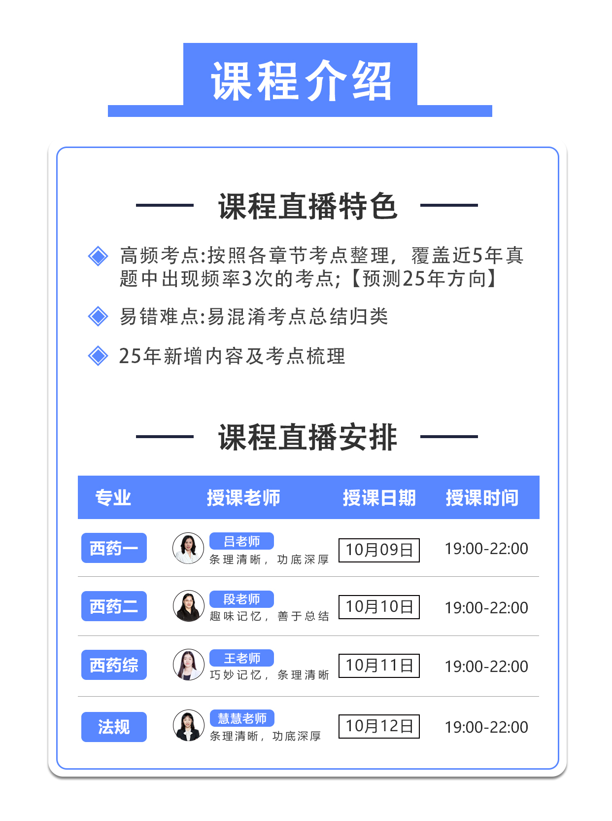 第一次参加药考,一次性报考了四科,一次性全过了!我的理论知识在上学的时候就比较扎实,欠缺的就是技巧和经验,一做题就慌,珮珮老师整个人充满活力,善于整合分析,还会传授经验技巧,彬彬老师经验丰富,说的很多都是考点。考前考试们还给我发了注意事项,考试的时候整个人就很从容。