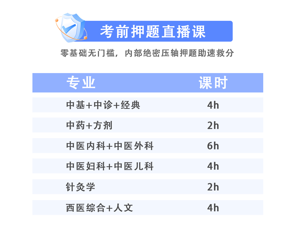 购买课程:【0元学】考前6页纸+押题密训+绝密300题(中医)